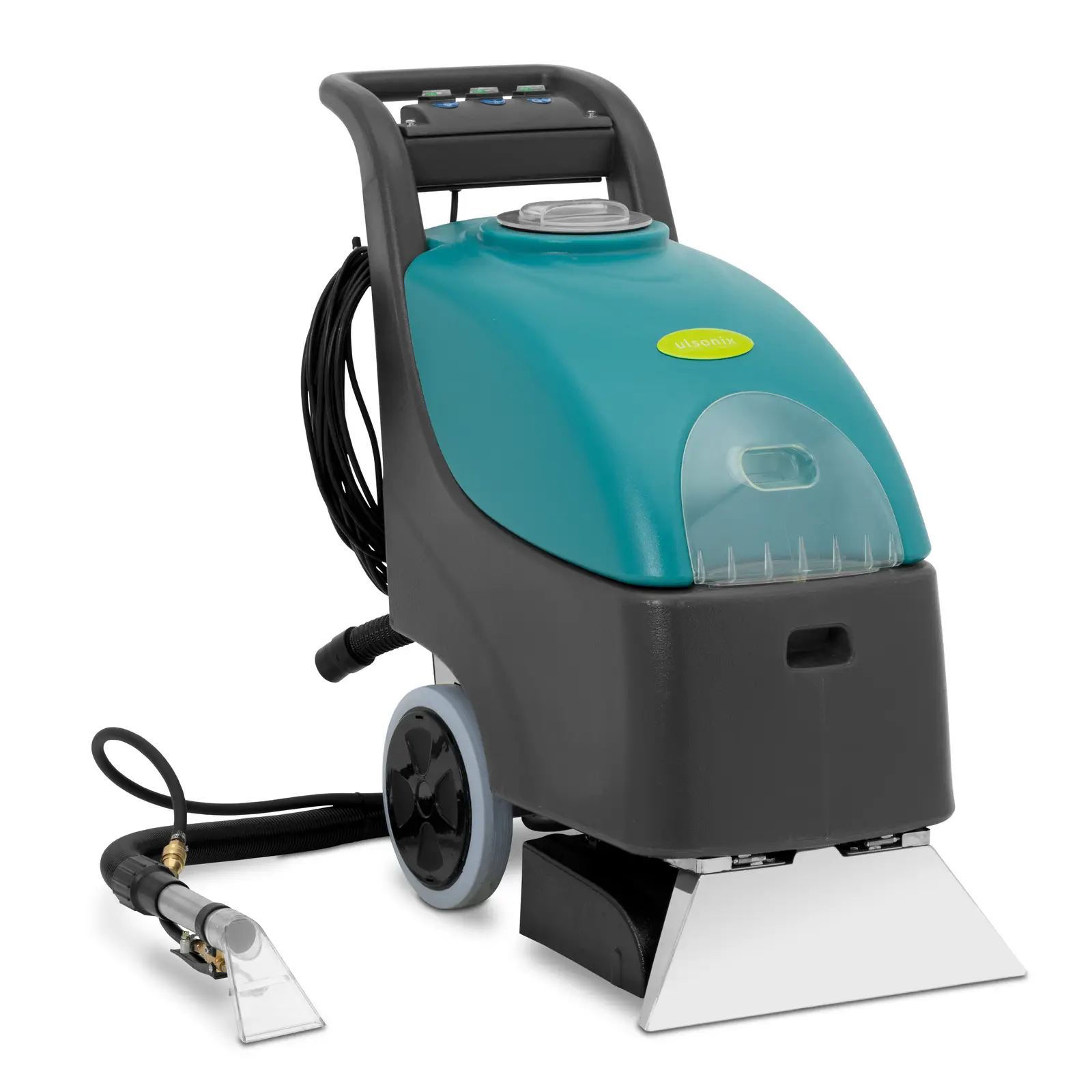 La máquina limpiadora de alfombras de ulsonix con una potencia total de 1500 W emplea tecnologías innovadoras para una limpieza integral. Las cuatro boquillas del dispositivo funcionan a 30 psi (2 bar) y garantizan así una distribución uniforme del agua. A su vez, un cepillo de 40 cm de ancho con 1100 rpm elimina eficazmente la suciedad, las manchas y los olores de las alfombras. El área de succión de 46 cm reduce la humedad con eficiencia y acelera el proceso de secado gracias a la potencia de 1100 W a 4,06 psi (0,28 bar). Los robustos cabezales de acero inoxidable garantizan una larga vida útil y un rendimiento fiable. La máquina para limpiar alfombras industrial convence por estas características con una capacidad de trabajo de 220 m²/h – ideal para apliacaciones en áreas residenciales y comerciales.